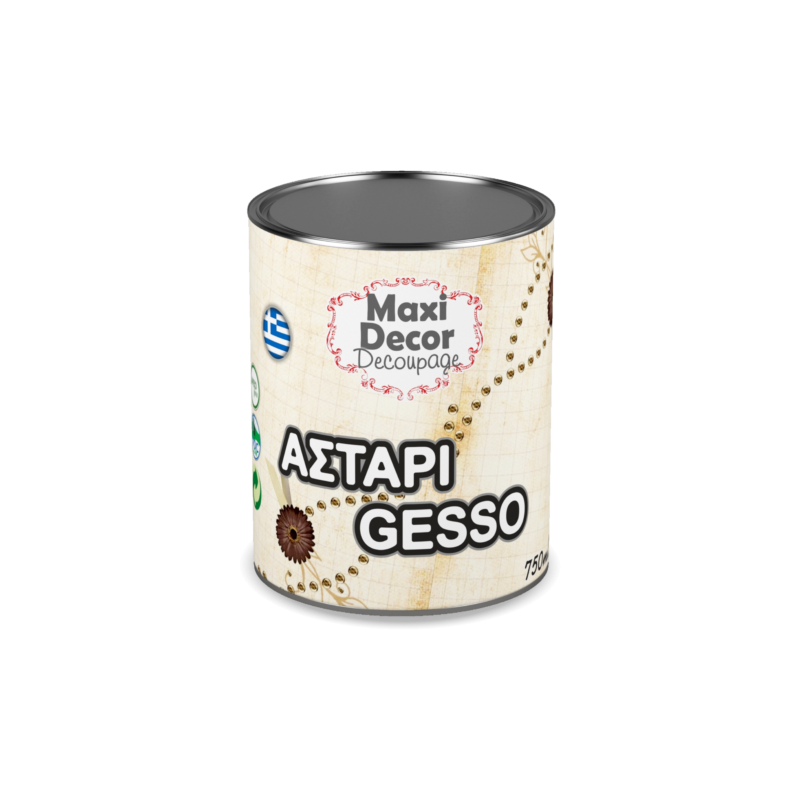 Το gesso primer της Maxi Decor έχει επαγγελματική ποιότητα σε προσιτή τιμή, με ένα μόνο πέρασμα καλύπτει άριστα, έχει πρόσφυση σε όλες τις επιφάνειες όπως ξύλο, χαρτί, πηλό, πέτρα, γυαλί, μέταλλο κλπ Απλώνεται με πινέλο ή ταμποναριστά με σφουγγάρι σε οποιαδήποτε επιφάνεια.