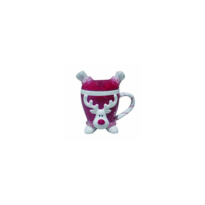 JK Home Décor - Κούπα με Τάρανδο Κόκκινη+Καπάκι 17x13.5cm 58017