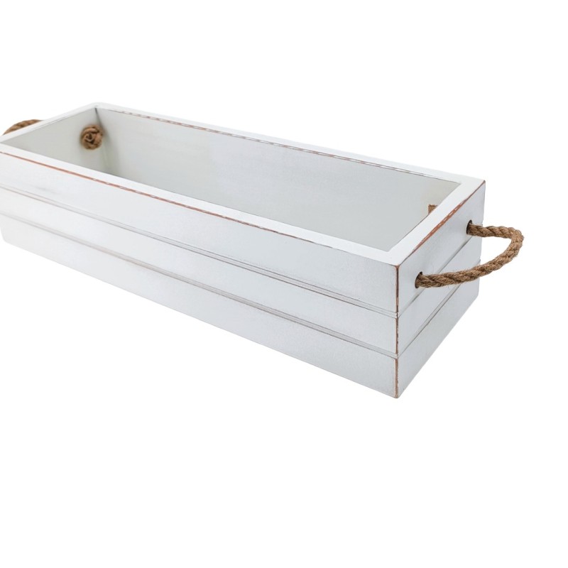 Ξύλινο κουτί από Mdf με λαβές από σκοινί, κατάλληλο για παρουσίαση φιαλών ποτού ή κρασιών, αλλά και συνθέσεις διάφορων προϊόντων.