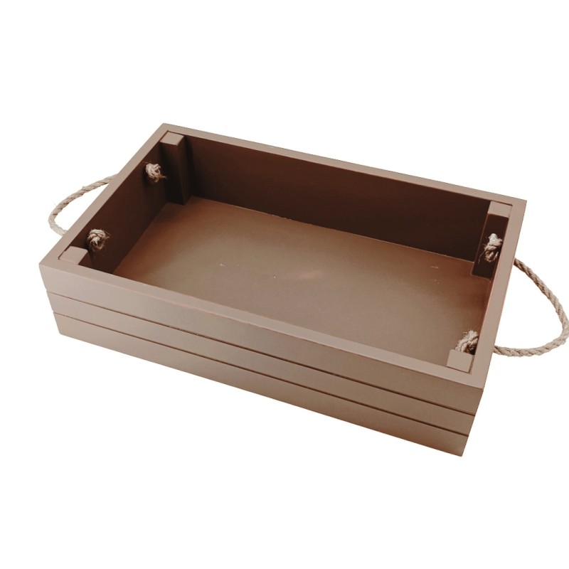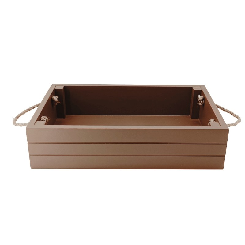 Ξύλινο κουτί από Mdf με λαβές από σκοινί, κατάλληλο για παρουσίαση φιαλών ποτού ή κρασιών, αλλά και συνθέσεις διάφορων προϊόντων.