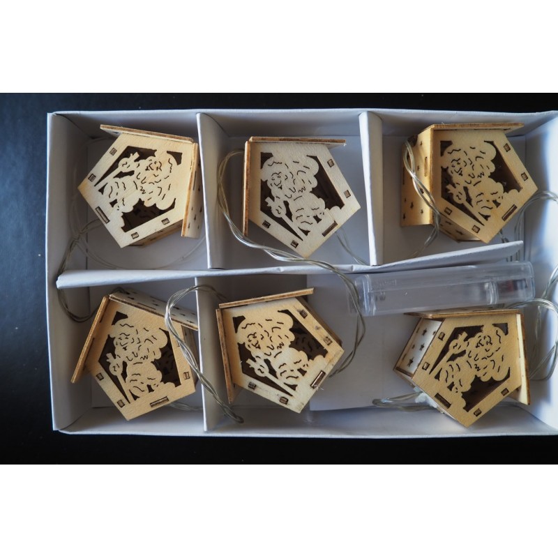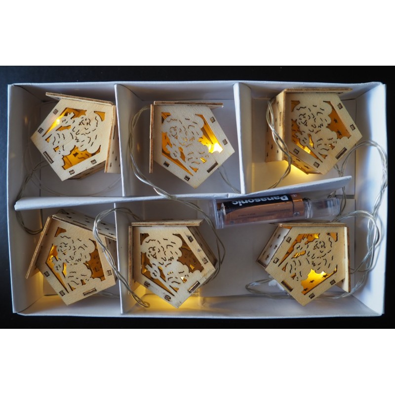 Γιρλάντα 1,20 m με 6 led λαμπάκια μπαταρίας "σπιτάκια" ξύλινο/φυσικό