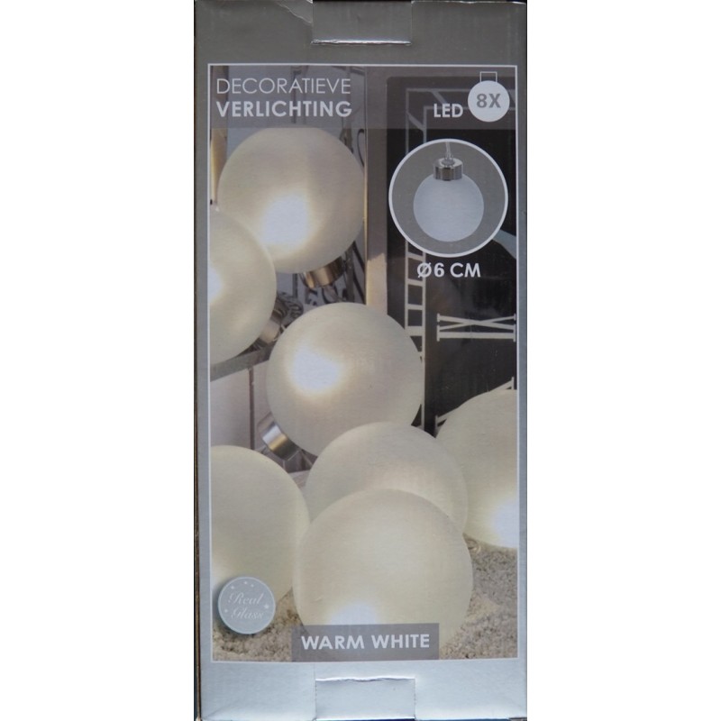 Γιρλάντα με 8 φωτιζόμενες γυάλινες μπάλες 6εκ μπαταρίας θερμό φως