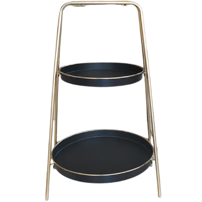 Πλατώ μεταλλικό χρυσό με 2 μαύρους δίσκους Φ29/Φ36/65εκ ύψος