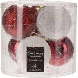 JK Home Décor - Μπάλα Γυάλινη Λευκή - Κόκκινη Glitter S/24 2.5cm